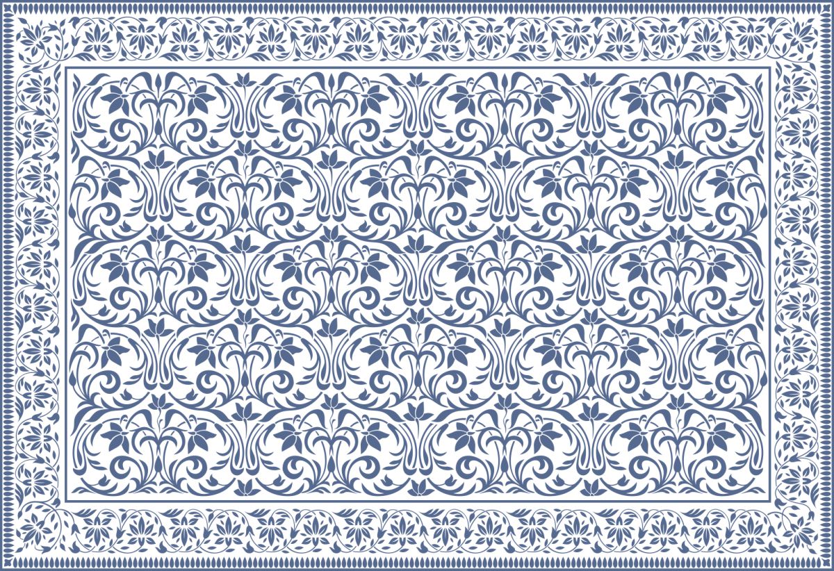 В основу узора трафарета легли рисунки ковра напольной плитки и фасада кухонной мебели.