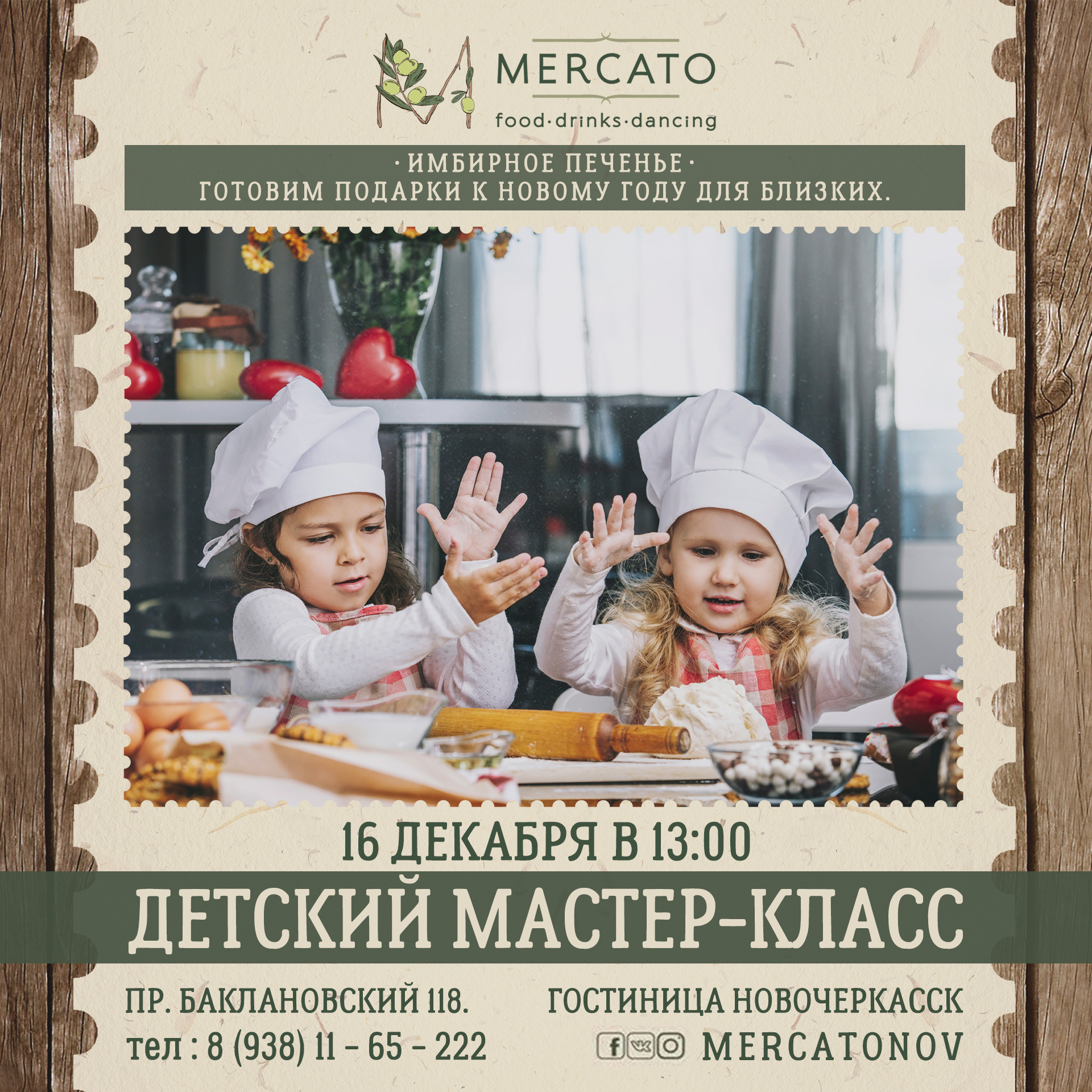 16 декабря в Меркато состоится детский кулинарный мастер-класс по приготовлению новогоднего печенья!
