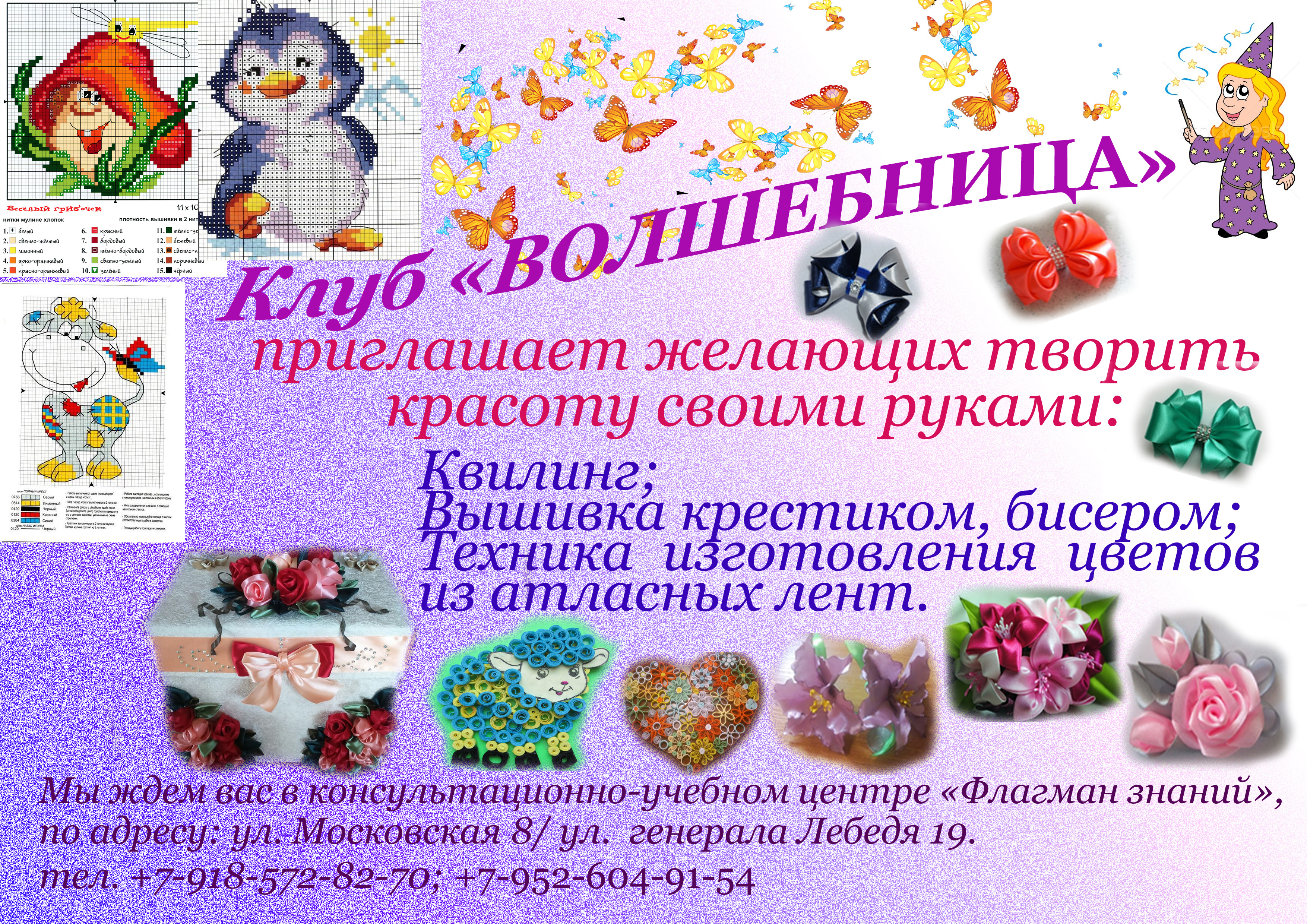 Клуб "Волшебница" в нашем центре. Вы можете выбрать одно или несколько направлений и отрабатывать ваше мастерство вместе с нами. Приглашаем от 7+