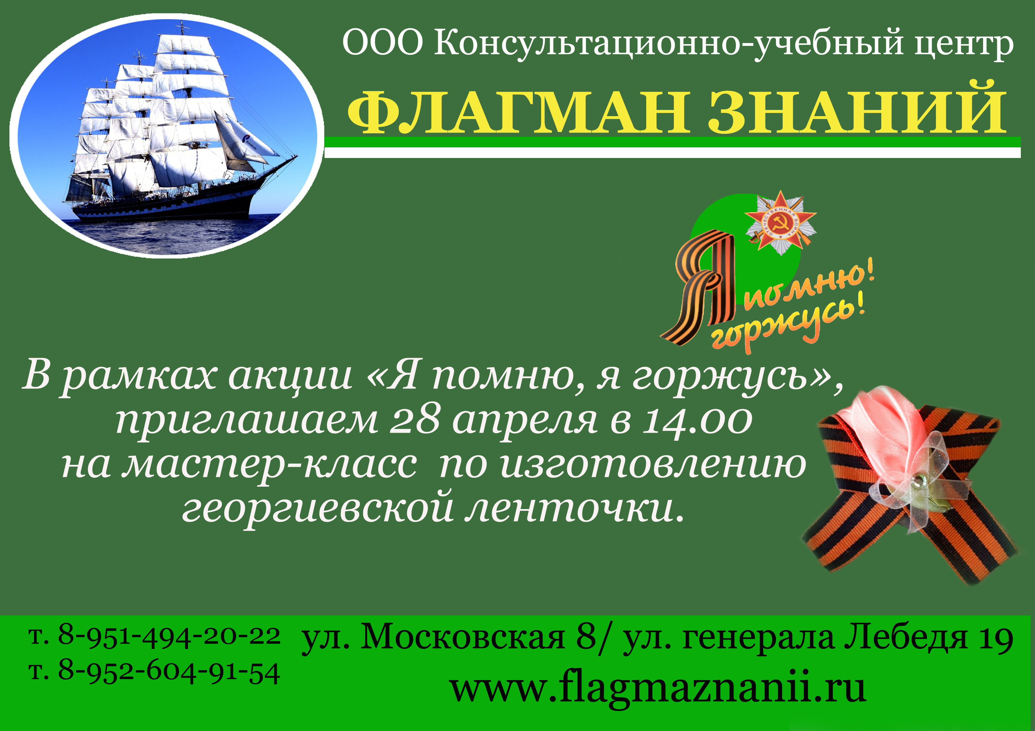 Приглашаем г. Новочеркасск, угол Московской 8/генерала А.И. Лебедя 19 (второй этаж)! Ознакомиться с направлениями нашего центра можно на веб сайте: http://flagmanznanii.ru/