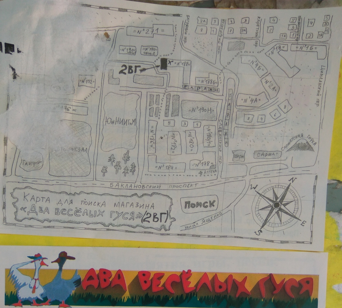 А вот отличная карта для поиска магазина, просто объявление на подъезде. Автору - отлично!