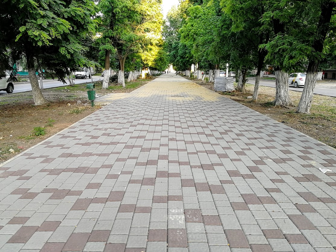 Изначально все улицы были просто замощены бутовым камнем, который и сегодня иногда проглядывает в глубоких выбоинах "качественных" дорог на улицах города. Потом для эстетики на на мостовую навалили земли, огородили бордюрами и получились газоны. На Московской это глядство по нечетной стороне очень наглядно. Там они ещё и наклонные и с них грунт смывается постоянно.