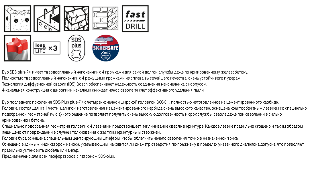 Есть отличный Бур по бетону Bosch SDS plus-7X 28.