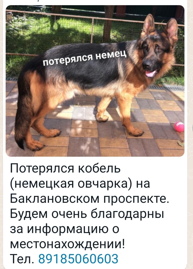 Грешник писал(а):Источник цитаты Сегодня, 28.12.23 г., в районе Баклановского проспекта потерялась немецкая овчарка (кобель).