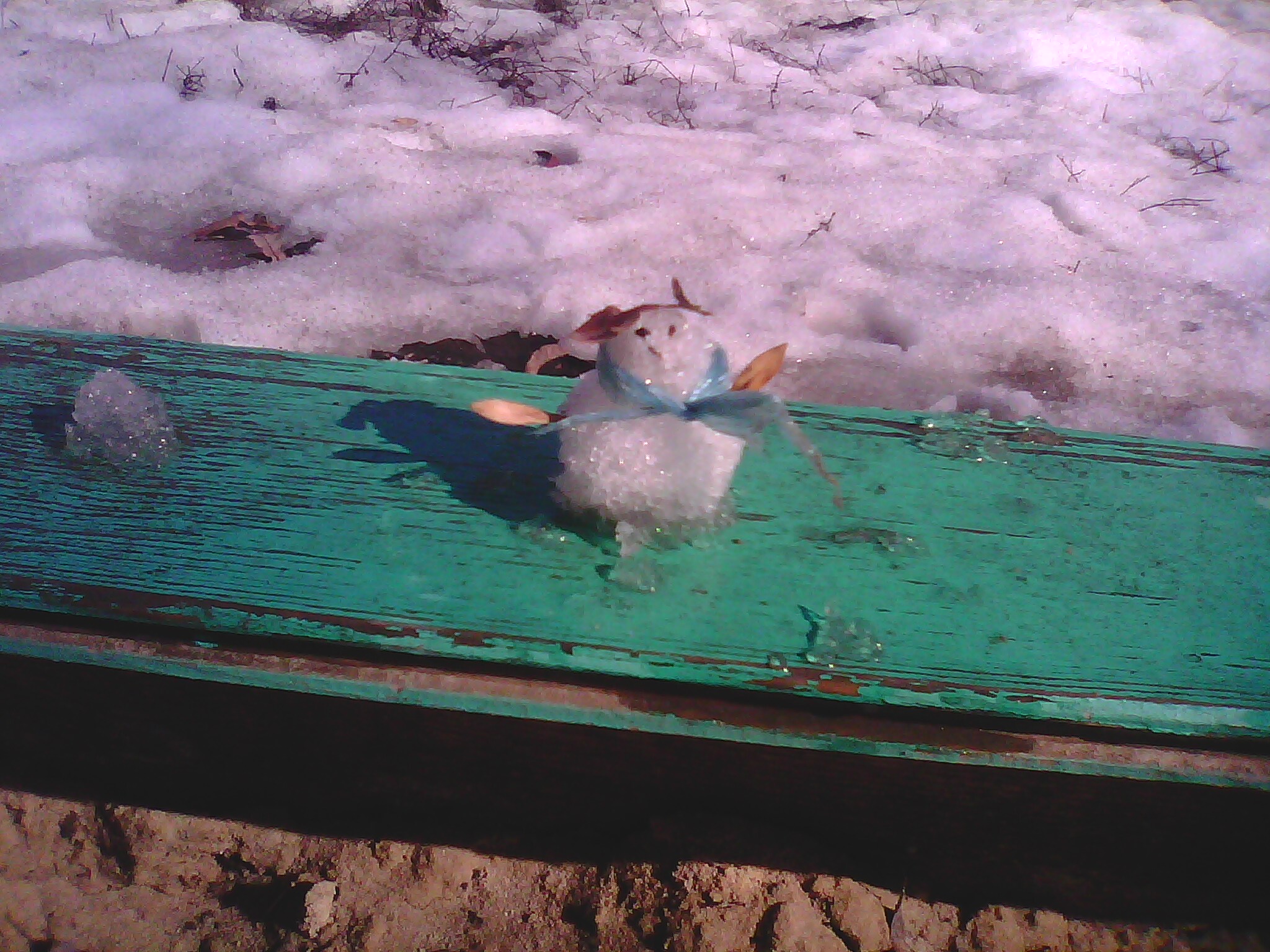 Из последнего снега слепила вчера снеговика. Маленького, но симпатичного.
